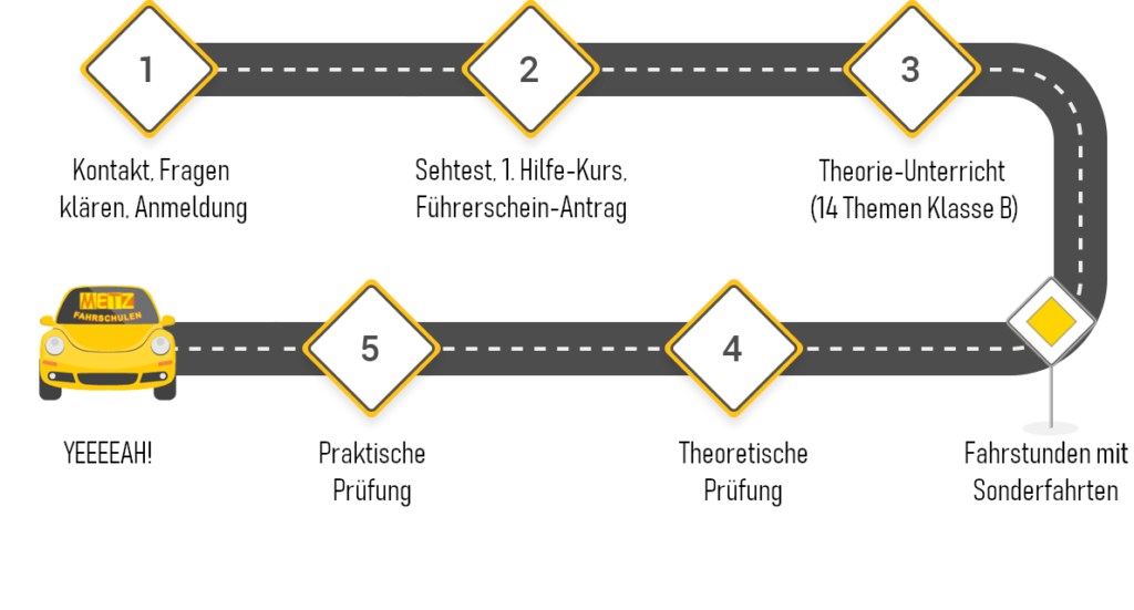 Selbstverständlich bietet die Fahrschule Metz in Frankfurt (mit Büros in Sindlingen und Zeilsheim) die Ausbildung zum Auto-Führerschein der Klasse B an. Die Fahrerlaubnis der Klasse B betrifft PKW mit einer zulässigen Gesamtmasse von nicht mehr 3500 Kilogramm und bis zu 9 Sitzplätzen (inkl. Fahrzeugführer/Fahrersitz).